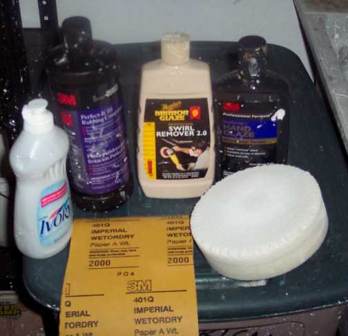 wet/dry paper, and foam wheel.