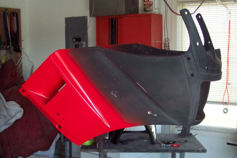 Base coat/Clear coat is used. Fairing mounting brackets are