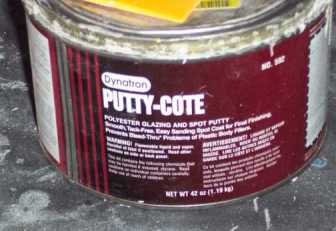 Just a couple of thoughts on filler. What I have found to be best is Putty-Cote by Dynatron. It is a two part filler. You mix a hardener with it to activate. You can use standard lightweight body filler also known as Bondo. I like the Putty Cote better because I feel I get a better surface finish. One thing you don't want to use is the one part Glazing and Spot Putty as shown on the right. This is also known as Red Lead. It is basically a very thick primer that does not get very hard when cured. It take over night to dry and does not have the best adhesion. Using the Putty-Cote you can be sanding in 15 to 20 minutes.