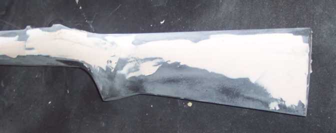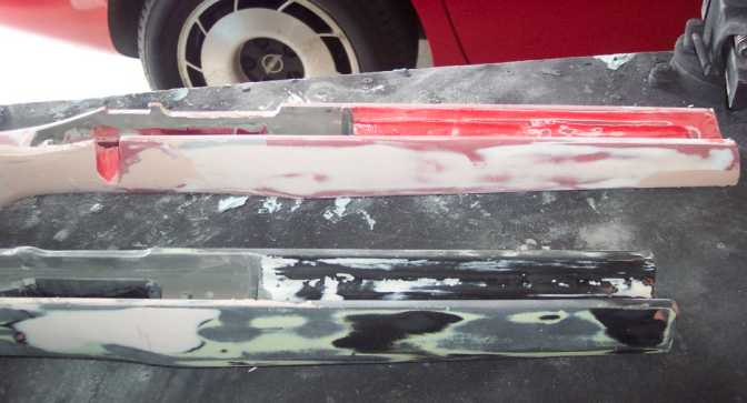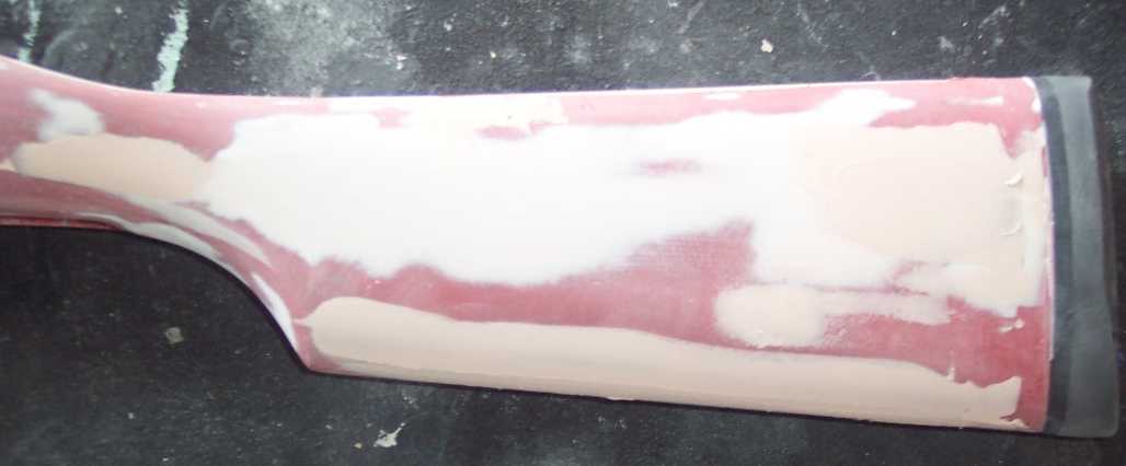 Here is the second application. The lower stock is in very good condition and will not take much filler. The top stock is getting a skim coat down the whole parting. It also had an abundance of pin holes that needed to be filled.