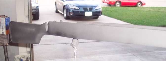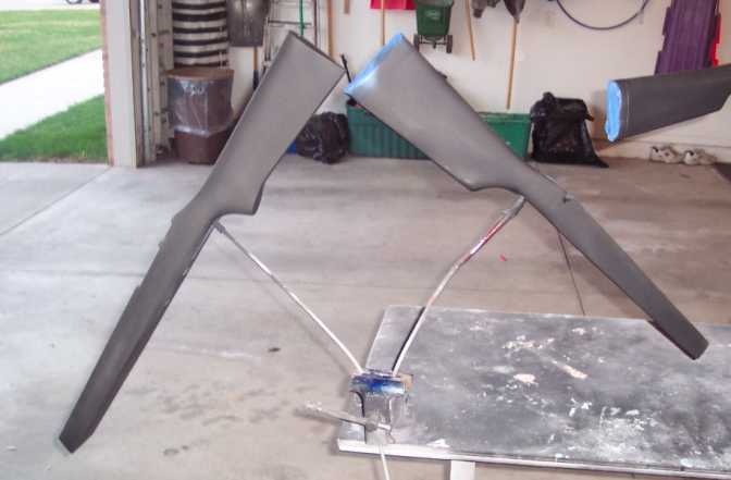 Here are all three stocks. Block sanded to 180. New masking tape applied to bedding, pads etc. You can see the shiny spots on the middle one. This is a wet surface that has not dried yet after been wiped down with reducer.